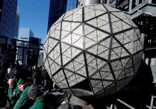Những người thợ lắp ráp quả cầu pha lê đón năm mới ở Quảng trường Thời đại, New York, 30/12/2018