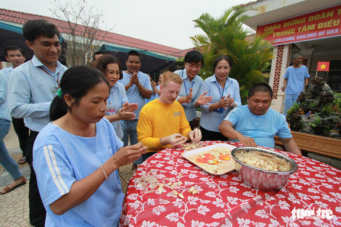 Sáng 6-3, khoản 30 quân nhân hạm đội tàu sân bay USS Carl Vinson có buổi thăm và giao lưu vui nhộn với các bệnh nhân tại Trung tâm nuôi dưỡng người tâm thần Đà Nẵng tại phường Hòa Khánh Nam, quận Liên Chiểu, Đà Nẵng.