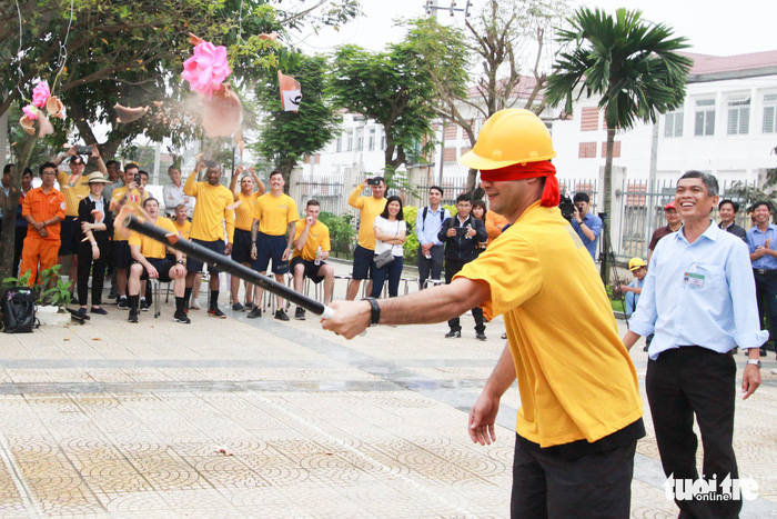 Bất ngờ với trò chơi bịt mắt đập niêu - Ảnh: TẤN LỰC