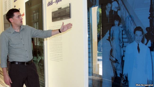 Giáo sư sử học Edward Miller tại khu trưng bày. Ảnh: VNExpress
