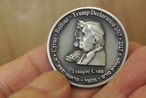 Để tôn vinh hành động của Tổng thống Trump khi chuyển đại sứ quán tới Jerusalem, người Israel đã đúc đồng xu có hình ảnh ông và vua Cyrus, người cho phép dân tộc Do Thái trở lại Jerusalem sau thời gian lưu vong ở Babylon vào 2.500 năm trước. (Ảnh: Youtube)