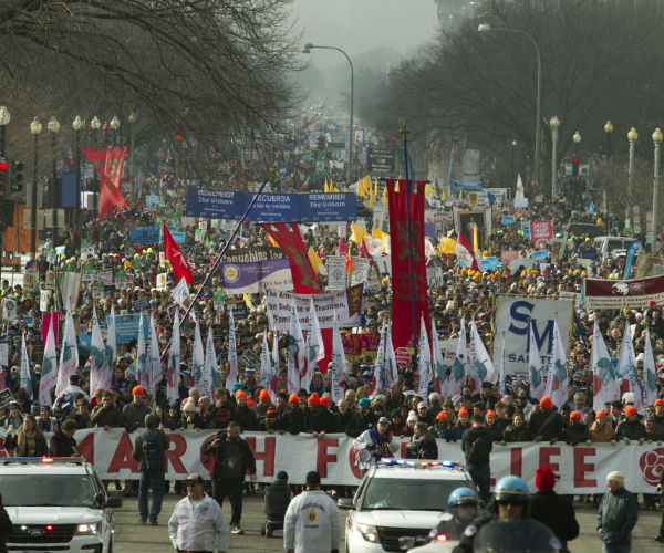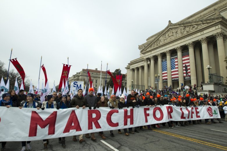Trước hết từ giữa sáng và trưa, các người biểu tình tề tựu tại hai giao điểm: hội trường khổng lổ thuê của hãng điện thoại Verizon ở trung tâm D.C. và sân vận động có mái che cũng kếch sù cùng mướn của Đại Học George Mason. Tại mỗi trong hai nơi này có Thánh Lễ nguyện xin Thiên Chuá mau chuyển hoá lòng dạ các thẩm phán tối cao Mỹ --vốn đã biểu quyết thuận trong vụ án Roe v. Wade năm 1973 cho phép phá thai trong ba tháng đầu thụ thai trên toàn quốc Mỹ-- để chính họ sớm huỷ đạo luật gián tiếp giết người này cho đúng luật của Thiên Chúa bao hàm trong giới răn thứ năm: Chớ giết người, mà từ Do Thái Giáo đến Thiên Chúa Giáo (danh chung cho cả Chính Thống Giáo lẫn Công Giáo và Tin Lành đa hệ phái) đã tuân giữ từ hơn 4000 (bốn nghìn) năm qua. Trước Thánh Lễ đã có những diễn văn cảm động của mấy diễn giả không là hồng y, giám mục hay linh mục . Trong Thánh Lễ có các bài thuyết giảng hùng hồn của các đấng chủ Lễ. Tại riêng vận động trường George Mason chẳng hạn, diễn giả là một nữ tu trẻ da trắng thuộc Dòng Sisters of Life (Chị Em Dấn Thân cho Sự Sống.) Như đọc được trong các tấm quảng bá về các nữ tu, Dòng này có đối tượng phục vụ là vulnerable pregnant women (những phụ nữ không chồng mà có thai,) và đích phục vụ chủ yếu là hope and healing mission after abortion (đem hy vọng cùng chữa lành cho các phụ nữ sau khi phá thai.) Rồi trong Thánh Lễ, Giám Mục Michael F. Burbidge cũng giảng rất hay khuyến khích cử tọa trẻ tuổi vốn chiếm đa số trong vận động trường đừng bao giờ phạm tội giết thai nhi. Vị chủ chăn “chiên” cuả giáo phận Arlington 21 counties lớn nhỏ cùng 70 xứ đạo có bằng Master Thần Học và Ph.D. Quản Trị Học Đường sinh năm 1957 (tức hiện 62 tuổi) tại Philadelphia, Pennsylvania, này tỏ ra vô cùng hăng say với các cuộc biểu tình tuần hành chống phá thai và, từ gần đây, với cả cuộc đại thanh tẩy sa ngã tình dục trong hàng ngũ chủ chăn “chiên” ở Mỹ nói riêng, trên thế giới nói chung.