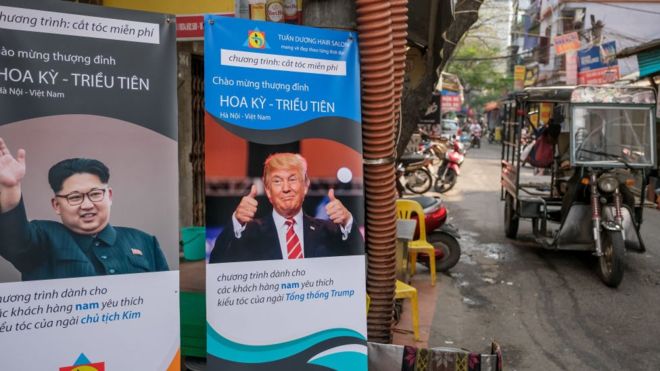 Thế nhưng không ai có thể cấm được sự đi lại của hàng chục người có kiểu đầu ông Kim và ông Trump vì ít nhất một tiệm cắt tóc ở Hà Nội đã và đang quảng bá thương hiệu bằng dịch vụ cắt miễn phí cho khách.
