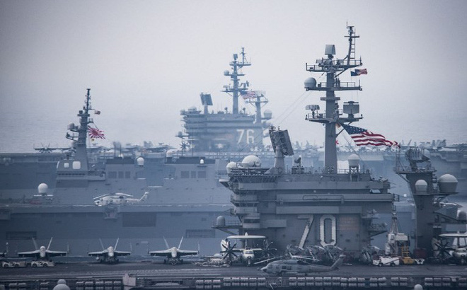 Hình ảnh các nhóm tác chiến tàu sân bay USS Carl Vinson, USS Ronald Reagan của Mỹ hoạt động cùng các chiến hạm của Lực lượng phòng vệ Nhật Bản ở Tây Thái Bình Dương, ngày 1/6/2017 (Ảnh: AFP)