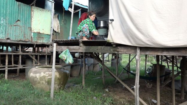 Chúng tôi vào những căn nhà bỏ hoang không có cửa trong ấp Chong Kok. Bên trong sơ sài chiếc bàn thờ phủ bụi. Vài chiếc xoong, nồi nằm trong xó nhà. Những dây quần áo treo ngoài hiên từ lâu không có người thu lại đã bạc màu, phủ đầy bụi. Dân ở đây nói trong số hơn 400 hộ lên bờ thì hơn một nửa trong số đó đã bỏ nhà.