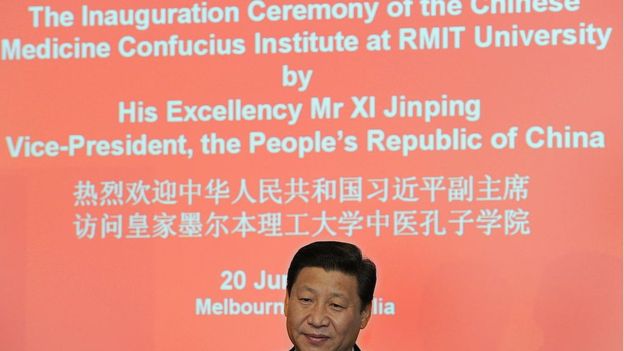 Chủ tịch Trung Quốc Tập Cận Bình tại lễ khánh thành viện Khổng Tử ở đại học RMIT ở Úc. Getty Images. Bản quyền hình ảnh