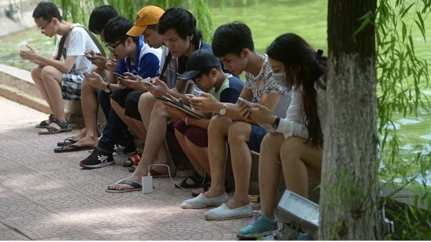 Smartphone và Facebook đã trở thành khái niệm quen thuộc với giới trẻ Việt Nam.  HOANG DINH NAM/AFP/Getty Images. Bản quyền hình ảnh