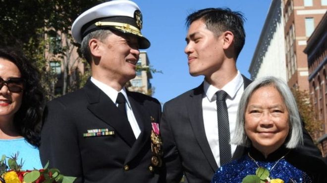Ông Nguyễn Từ Huấn trở thành người Mỹ gốc Việt đầu tiên được thăng phó đề đốc Hải Quân Hoa Kỳ. Đại tá Huấn, 60 tuổi, nhận chức mới, thăng hàm tướng, tại một buổi lễ ngày 10/10 ở Washington, D.C.