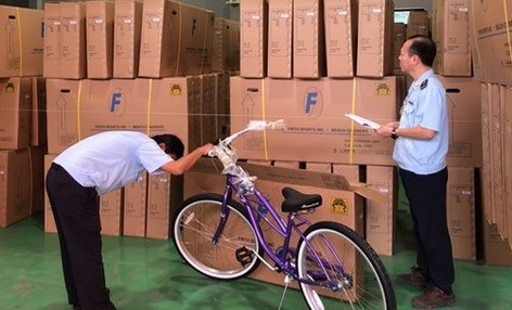 Theo đó, hôm 21/10, Cục Hải quan Bình Dương phối hợp với Cục Kiểm tra sau thông quan - Tổng cục Hải quan kiểm tra, phát hiện một lô hàng xe đạp xuất khẩu giả mạo xuất xứ Việt Nam tổng trị giá trên 26.000 USD của Công ty TNHH xe đạp E. chuẩn bị xuất khẩu sang thị trường Mỹ.