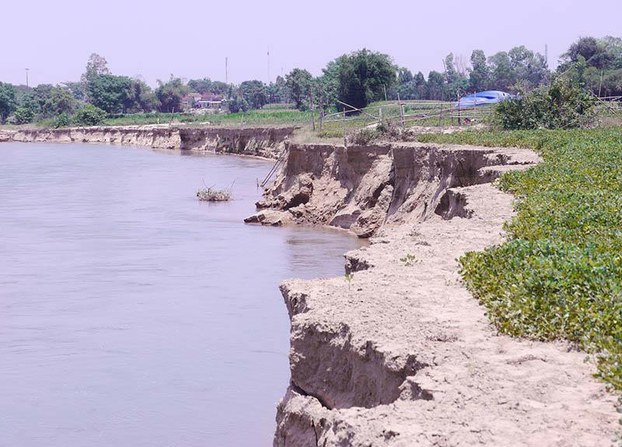 Thêm nữa là khi dòng chảy mạnh thì nó dễ làm cho bờ bị lở. mà sông Tiền, sông Hậu chịu ảnh hưởng của triều bên biển Đông nên cũng có hai con nước lớn hai con nước nhỏ. Mỗi ngày hai lần như vậy. Khi lưu lượng chảy nhanh nó sẽ cuốn bờ sông. Một phần hữa là do dân mình lấn sông cất nhà làm trầm trọng thâm khả năng bị sạt lở.”