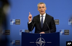 TTK NATO Jens Stoltenberg tại một cuộc họp báo tại trự sở NATO ở Brussels, 1/4/2019.