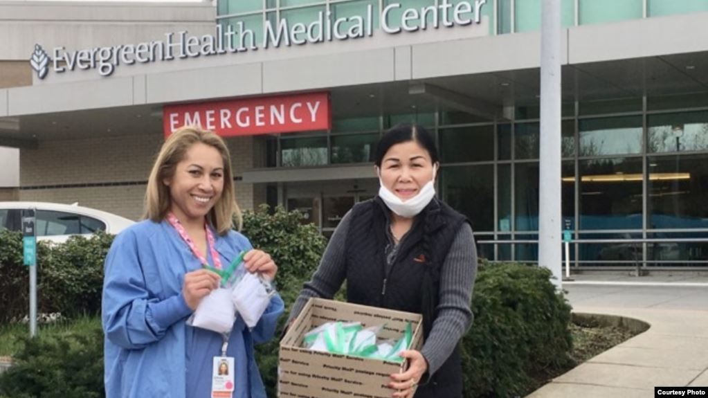 Cũng từ Seattle, chị Mỹ An Lâm, đã cùng người hàng xóm của mình, may hàng trăm chiếc khẩu trang tặng cho bệnh viện Highline Medical Center.