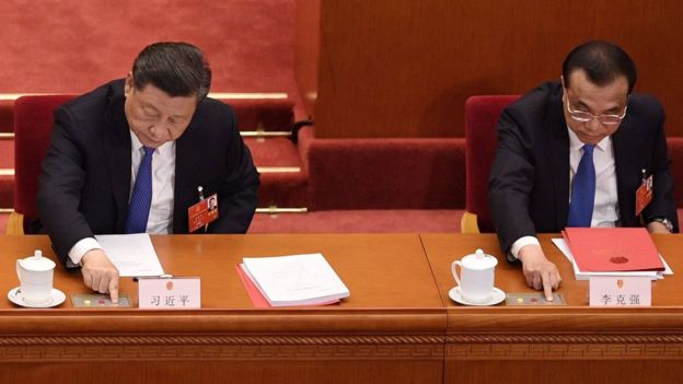 Chủ tịch Trung Quốc Tập Cận Bình, Thủ tướng Lý Khắc Cường bấm nút bỏ phiếu về luật an ninh Hong Kong ngày 28/5 tại Bắc Kinh. AFP. Bản quyền hình ảnh