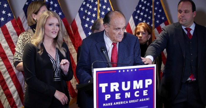 Cựu thị trưởng thành phố New York, luật sự Rudy Giuliani, một thành viên trong nhóm pháp lý của chiến dịch TT Trump, từng tuyên bố vào ngày 19/11 rằng đã có những lời khai nhân chứng tuyên thệ tại các tiểu bang chiến trường, cáo buộc âm mưu lật ngược kết quả cuộc bầu cử để giúp ứng viên Đảng Dân chủ Joe Biden giành chiến thắng.