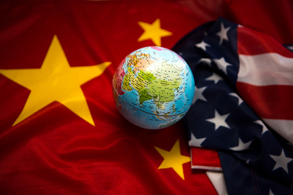 - 534-534-1: Cộng hòa nhân dân Trung Hoa siêu cường toàn cầu mới nổi. Đấu tranh giành quyền tối cao giữa Mỹ và Trung Quốc. Ảnh biểu tượng về các chủ đề kinh tế, công nghiệp, tội phạm mạng, gián điệp công nghiệp, v.v ... Bức ảnh thể hiện một quả địa cầu trên lá cờ của Trung Quốc và Hoa Kỳ. (Ulrich Baumgarten/ Getty Images)