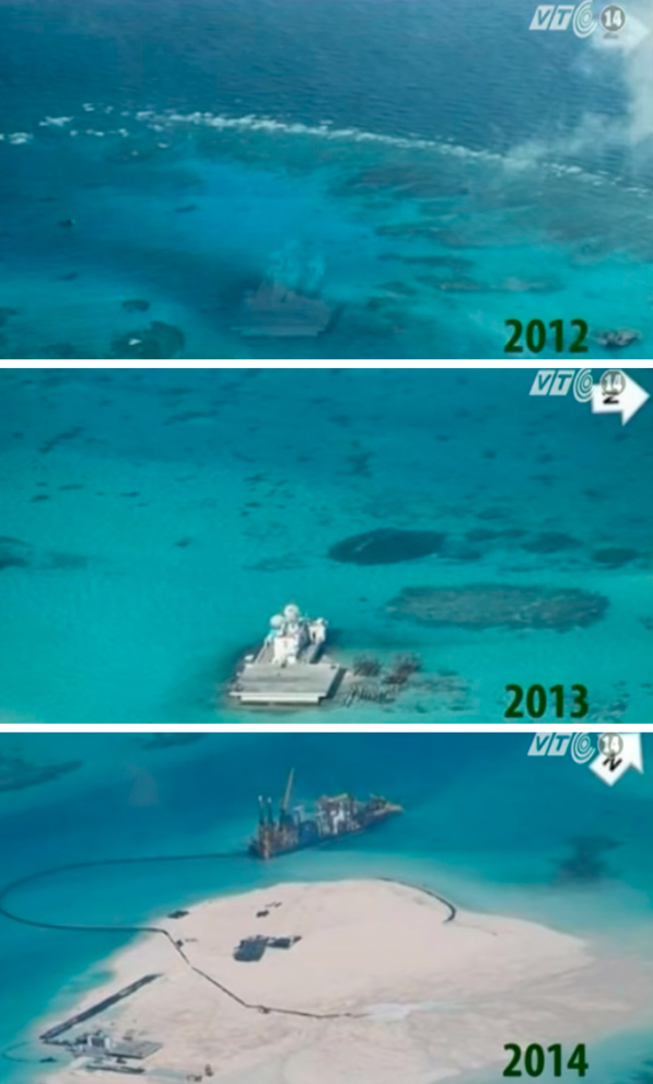 Trong vòng ba năm, từ 2013-2015, Trung Quốc đã đẩy mạnh hoạt động cải tạo đất trên các rạn san hô và đảo san hô trong chuỗi đảo Trường Sa ở Biển Đông, nơi mà Việt Nam, Philippines, Đài Loan, Malaysia và Brunei tuyên bố có chủ quyền.