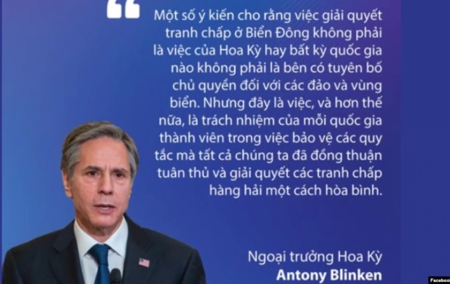 Ngay sau khi Ngoại trưởng Hoa Kỳ Antony Blinken có bài phát biểu tại LHQ về vai trò và lợi ích của Washington trong việc giải quyết cách tranh chấp lãnh hải ở Biển Đông, nhiều người Việt Nam bày tỏ sự đồng tình.