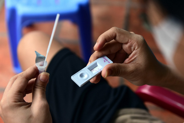 Người dân ở phường 5, quận Gò Vấp (TP.HCM) tự lấy mẫu xét nghiệm COVID-19 dưới sự hướng dẫn của nhân viên y tế chiều 24-9 - Ảnh: DUYÊN PHAN