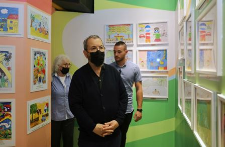 Cựu Thủ tướng Israel Ehud Barak xem tranh của trẻ em yếu thế tại chùa Vĩnh Nghiêm, Sài Gòn, này 4 Tháng Tám 2022. (Hình: VNExpress)