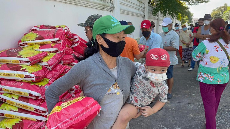 Người tị nạn Việt Nam tại Thái Lan nhận gạo hỗ trợ (minh họa). Hình: FB Thái Văn Đường