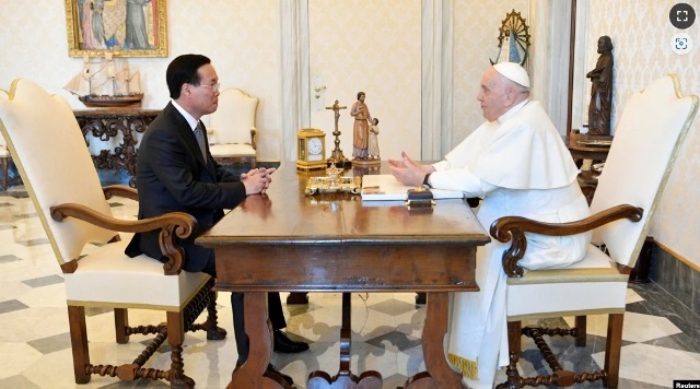 Chủ tịch nước Võ Văn Thương tiếp kiến Giáo hoàng Phanxicô tại Vatican vào ngày 27 tháng 7 năm 2023.